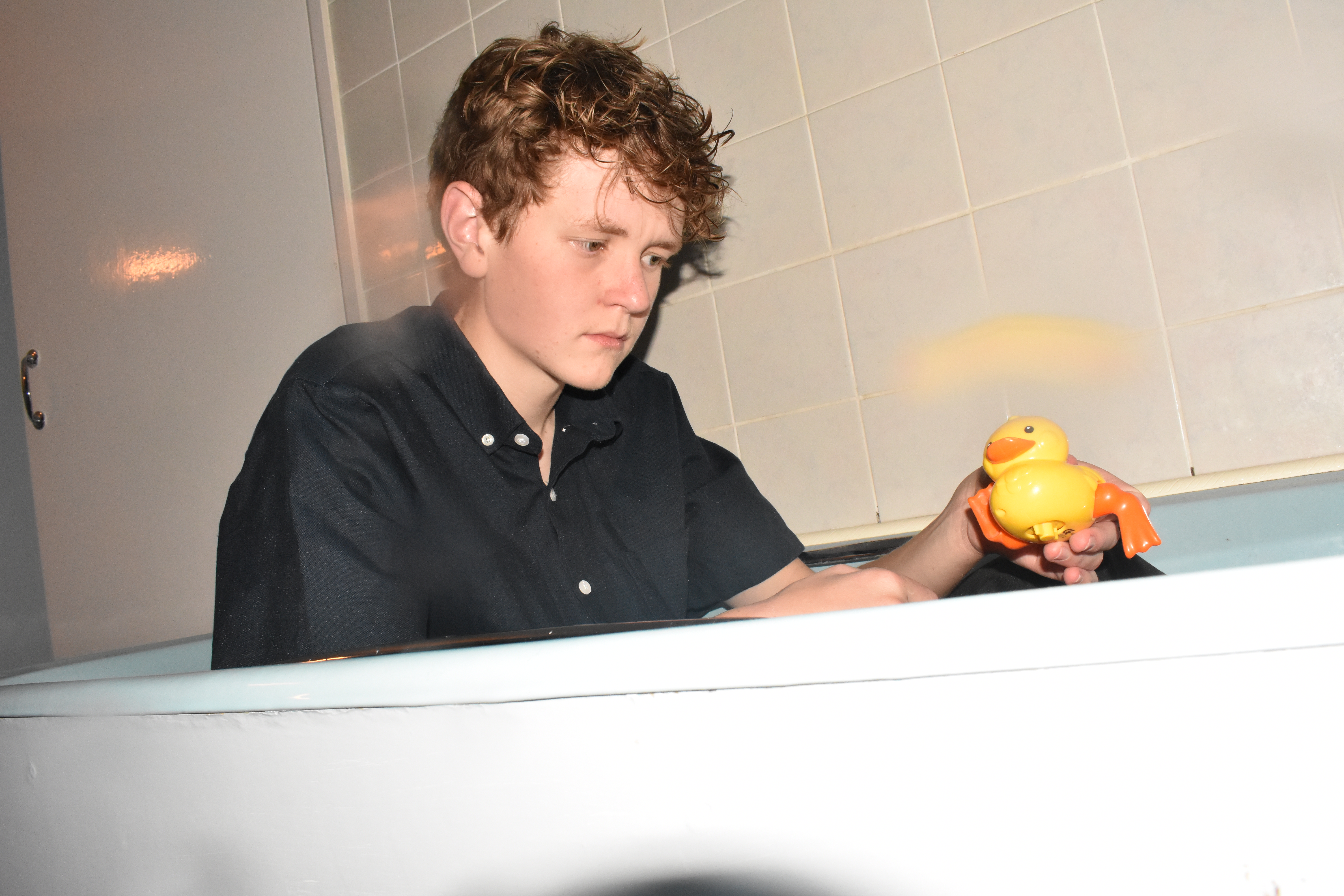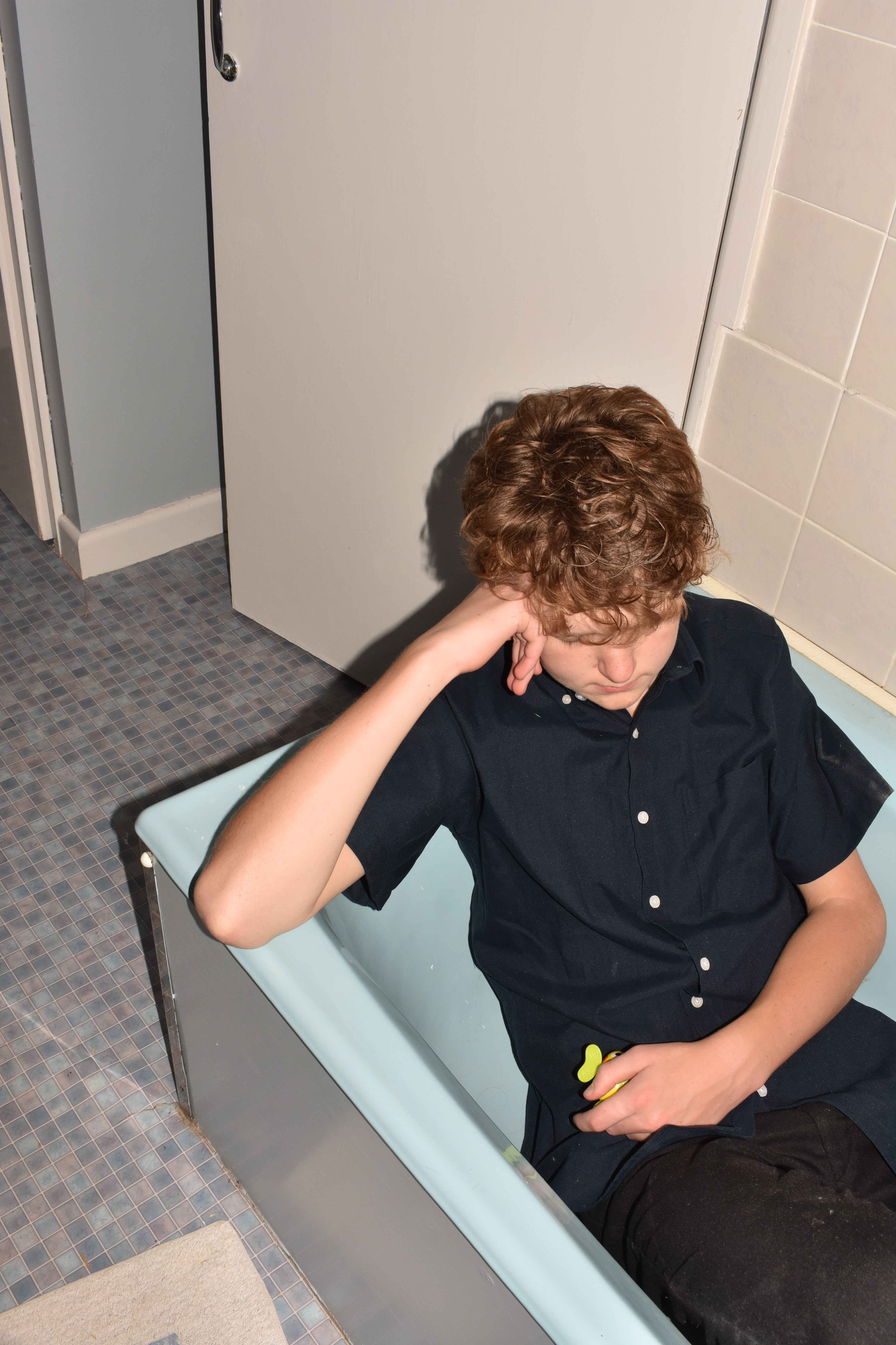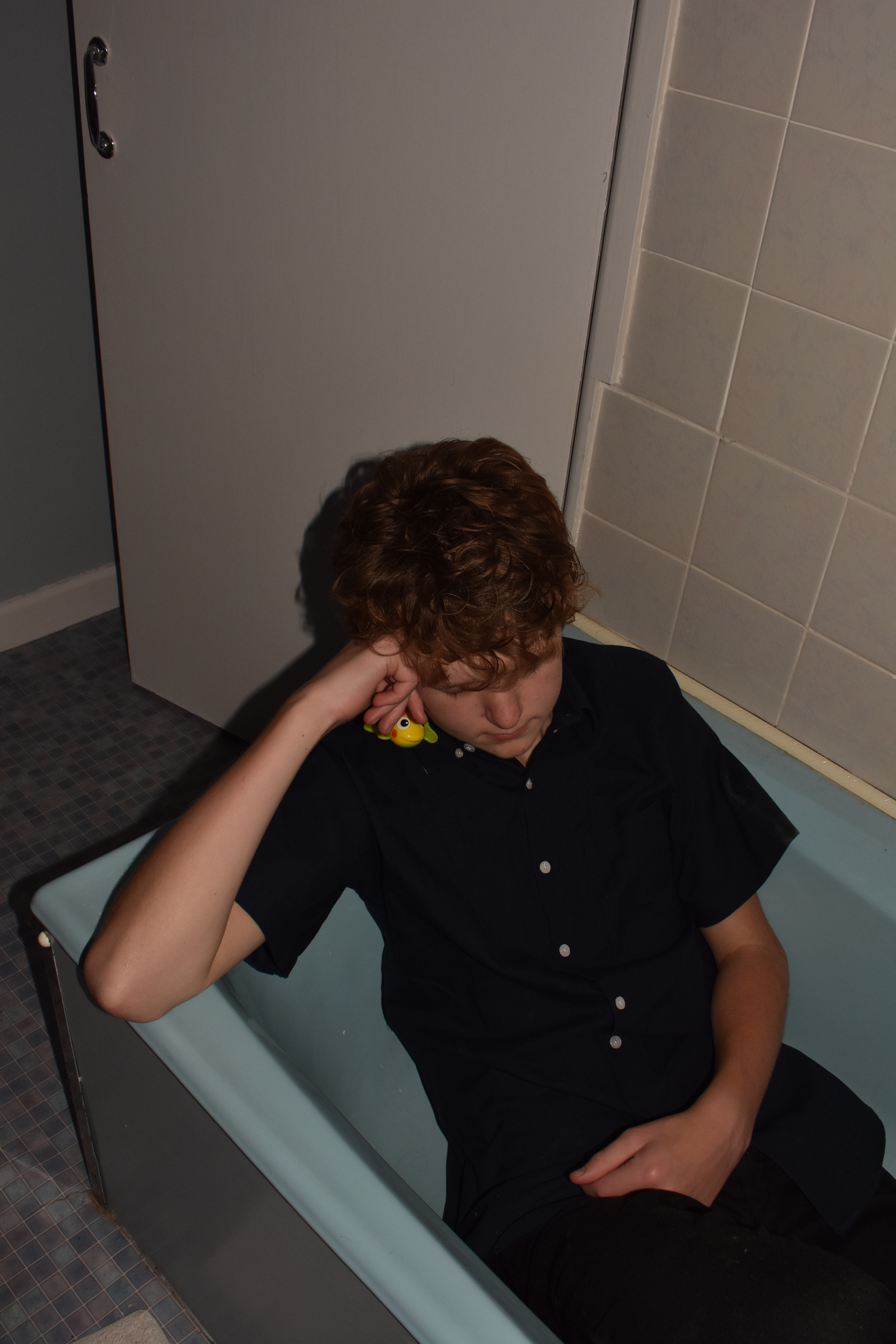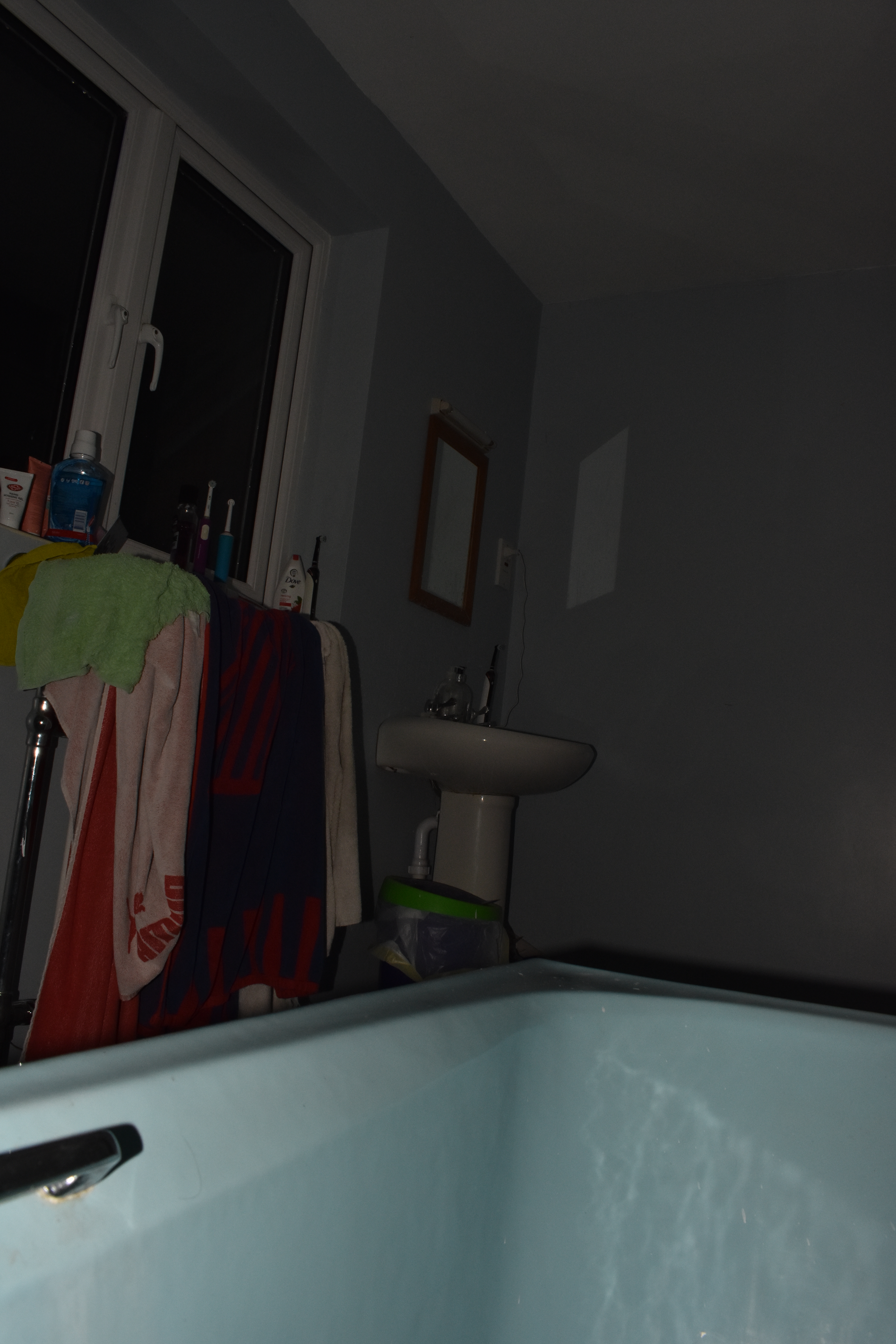 In these photographs I took them sitting on the bathroom floor and also standing on the toilet or just holding up my camera in the air with out looking in the view finder to get higher than the figure in the photograph. (Throughout these photographs I did not use a telephoto lens.) So far I feel that this is one of my favourite photoshoots that I have done so far for this module (this also includes the 2 sets of images that are further down the page) as I feel that the out comes for these images came out incredibly well and I am very proud of them. I usually don’t take very good photos in colour and I prefer them in black and white but feel that these images look really good in colour. My 2 favourite photographs are the second and fourth one because they have a really strong composition that is very unique and because of the contrast between the shadows and dark clothing and the light pastel colours of the bathroom it really draws your attention to the figure in the photographs. if I could change 1 thing about these images it would be to turn the other light in the room off as it leaves a amber glare on the door in the third image.