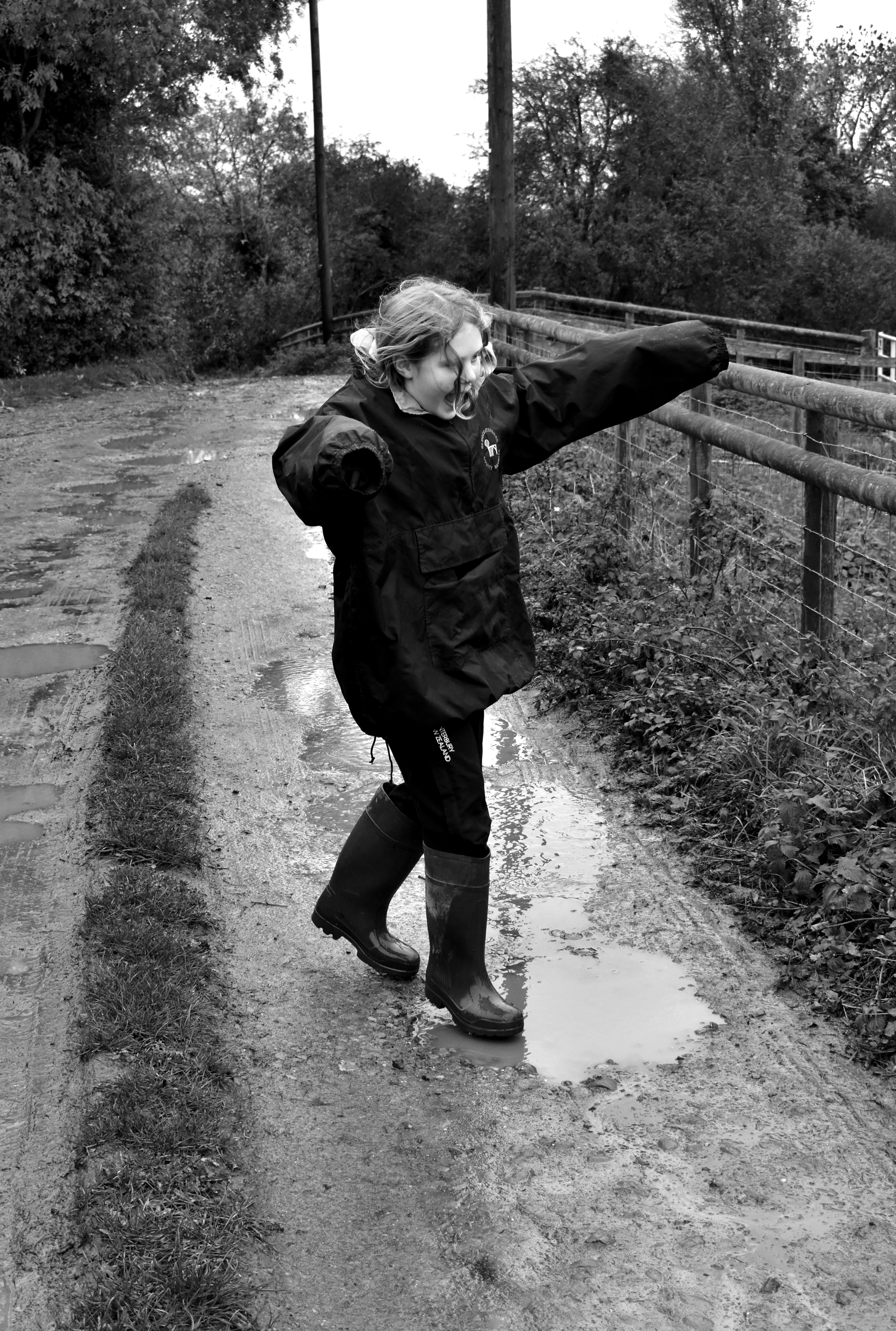 In this shoot I got my sister to jump into muddy puddles that are along my drive. I used a shutter speed of 1/500fps so I could capture my sister and the water without blurred motion.