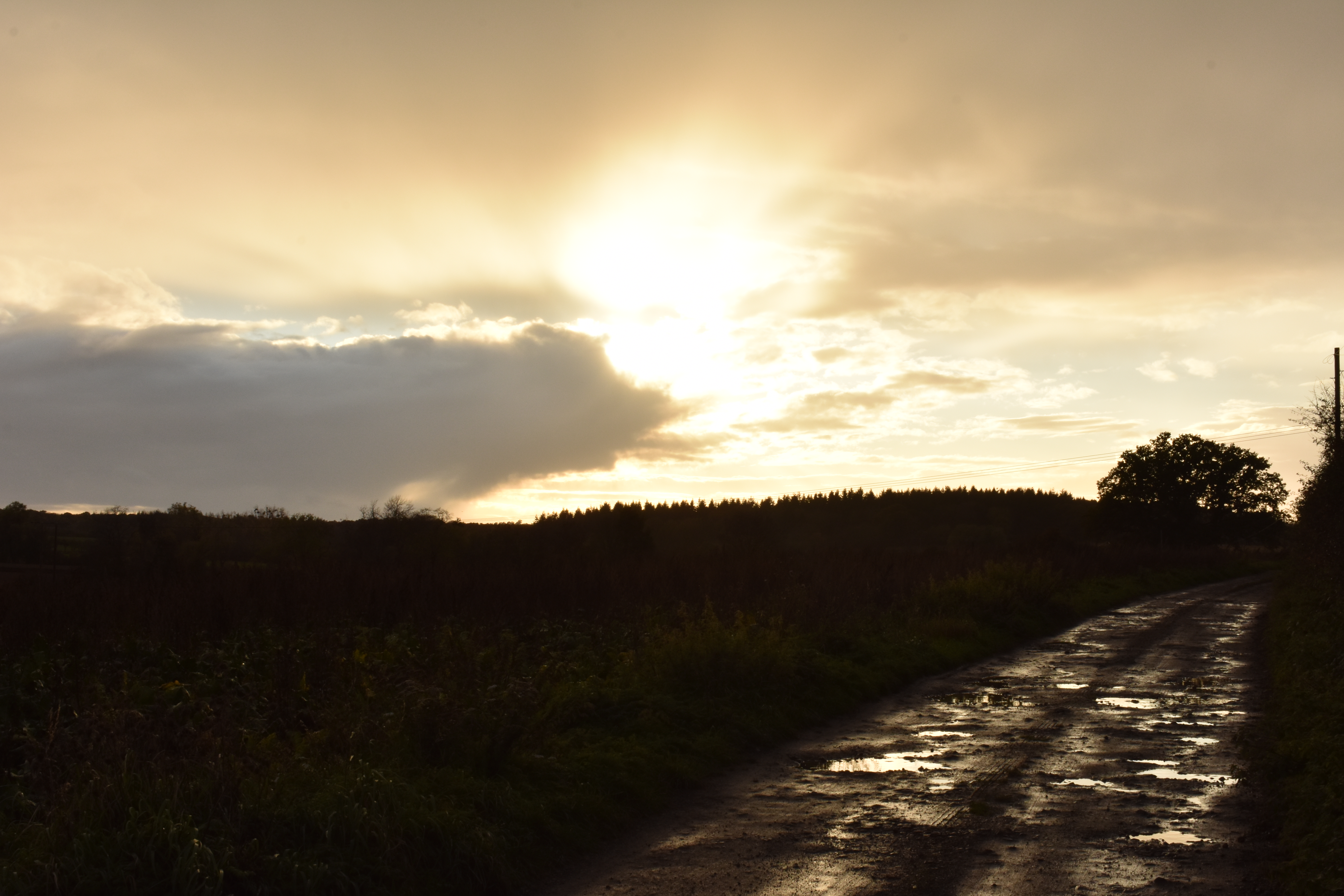 These images I also took on my drive but I took them of the sun setting I am not very good at doing landscape pictures but if feel that they are okay. I also took some pictures of the trees down my drive against a very dark cloud that came over our house. I under exposed for one of them unintentionally but I feel that it looks kind a cool.
